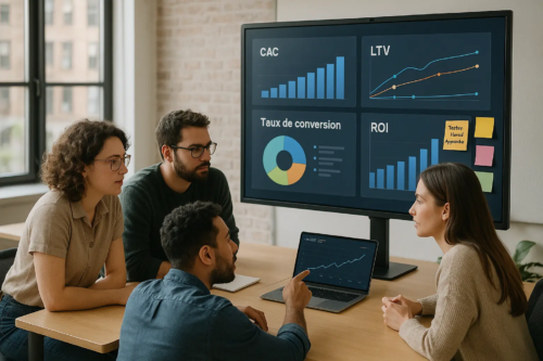 - Conversion : taux de signature de devis, panier moyen, récurrence.